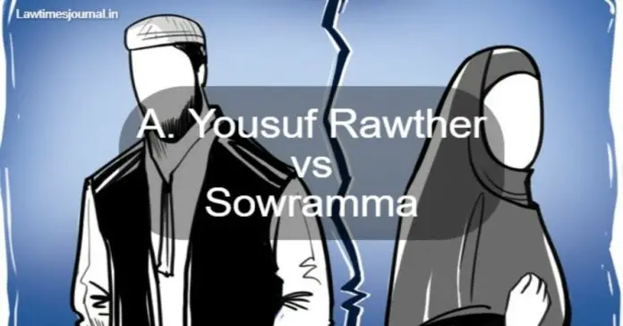 Sowramma, a Hanafi girl, aged 15 was married to Yusuf Rowthar who was twice her age in 1962. Sowramma had attained puberty before her marriage and soon after their wedding was residing with her husband in their conjugal home. The immediate next day the husband had gone off to Coimbatore where he ran a radio dealer’s business. The plaintiff stayed in her conjugal home for one month after which she returned back to her parents. The reason for such return was blamed on the husband. The separation lasted for a span of two years during which the defendant failed to maintain his wife. The reason for this was that the defendant was keen to restore their relationship but the plaintiff refused to return to her conjugal home. After which an action of dissolution of marriage was instituted by the wife. The trial court dismissed the suit but the Subordinate Judge’s court granted a decree for the dissolution of marriage. The husband, aggrieved by the decision had approached the court to challenge the validity of the decree of the lower appellate court.
